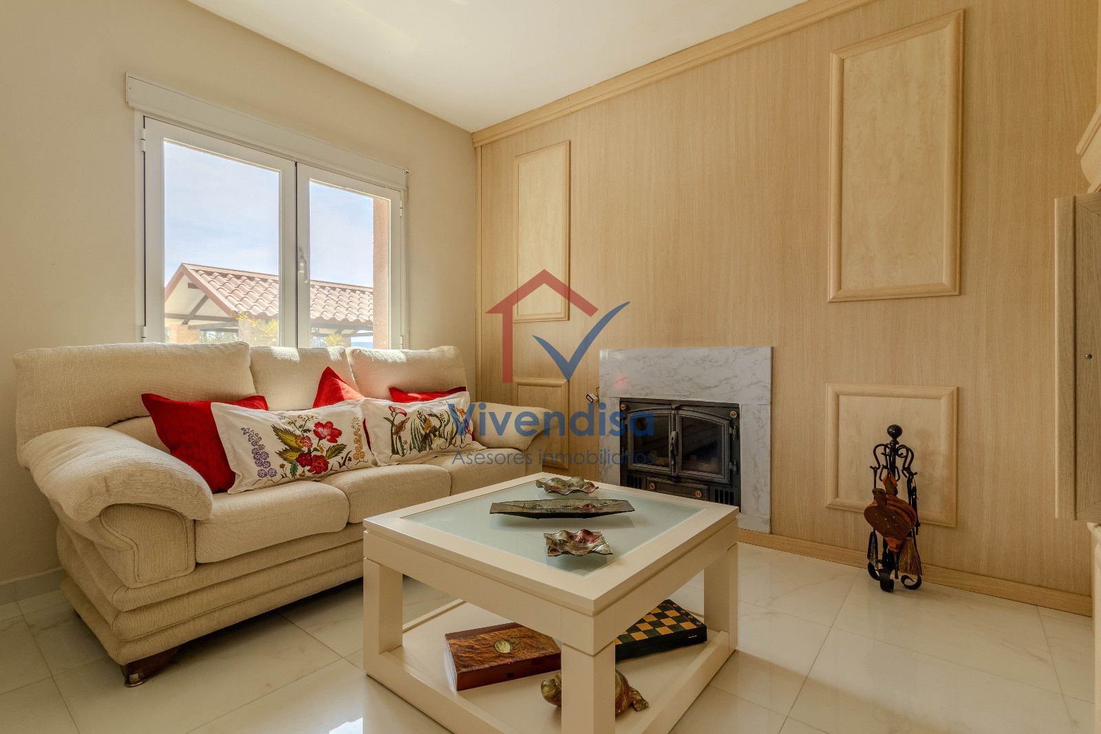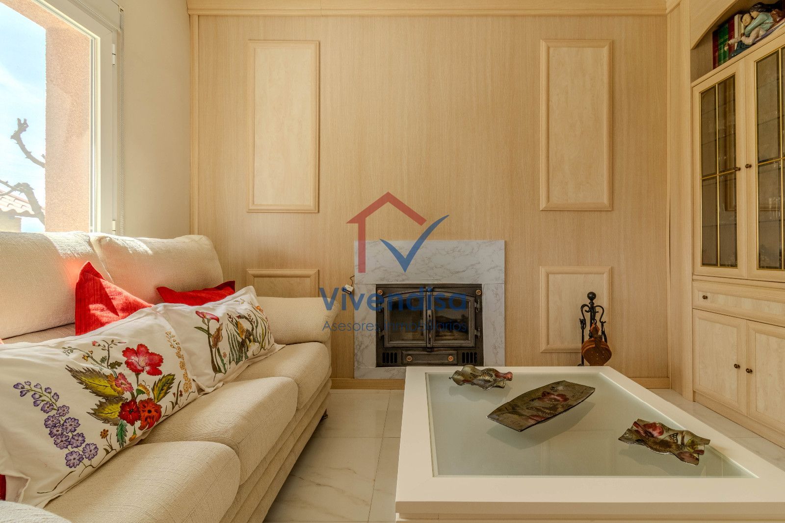Chimenea en el salón conectada a los radiadores, que aporta eficiencia energética y una agradable sensación de confort