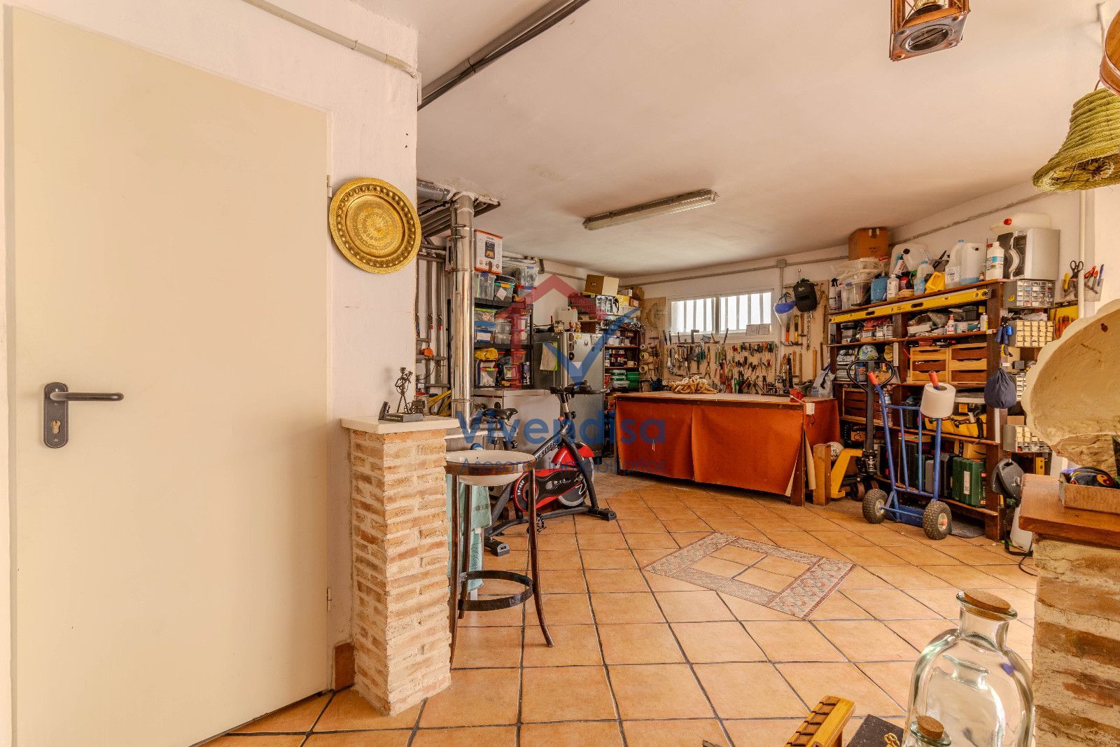 Amplio garaje-bodega diáfano, perfecto tanto para varios vehículos como para zona de almacenaje, ocio o reuniones familiares. Destaca la entrada con rampa revestida con baldosa de alta resistencia, diseñada para soportar vehículos pesados.