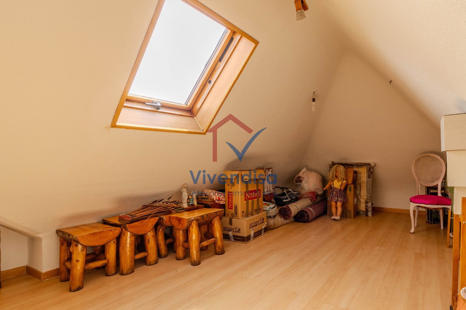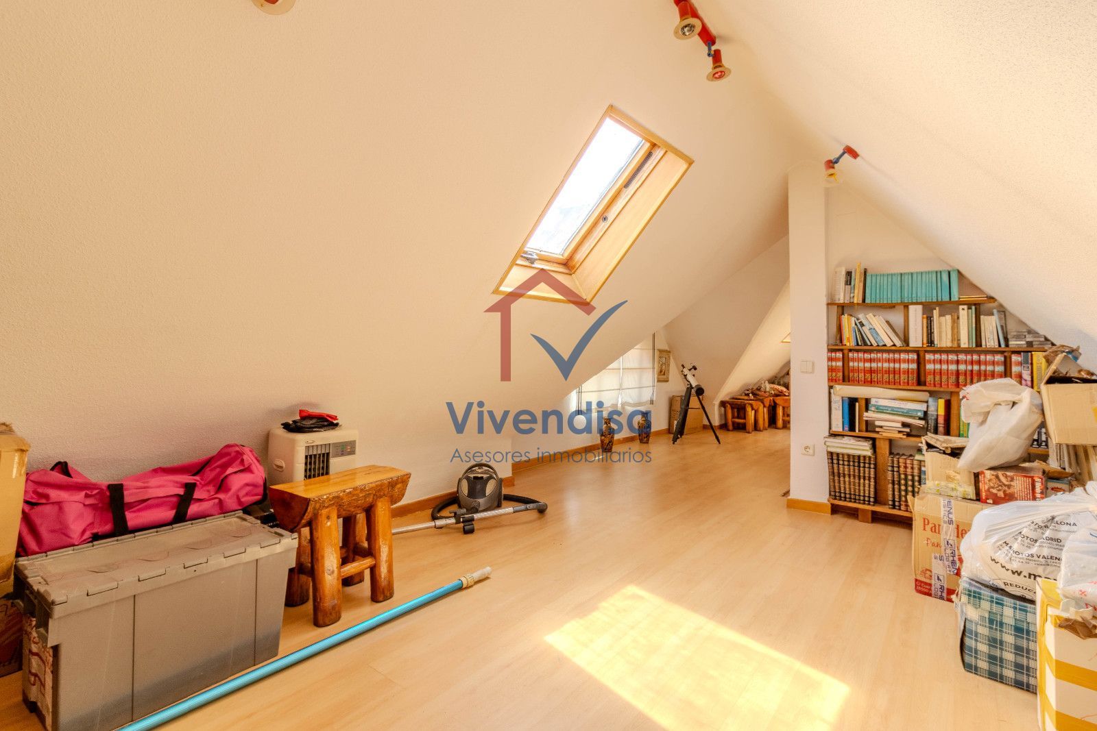 Amplia buhardilla diáfana, muy luminosa gracias a dos ventanas Velux y una ventana vertical, ideal como sala de ocio, despacho, zona de juegos, gimnasio o dormitorio adicional.